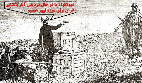 ديولافوا : مادر حال دزديدن آثار باستاني ايران براي موزه لوور هستيم - نگاره بالا از کتاب سفر نامه ديولافوا شواليه لژيون دونور و برنده جايزه آکادمي فرانسه ؟! (سفرنامه , ديولافوا , برگردان ايرج فره وشي , چاپ دانشگاه تهران , 1376 , برگ 227 , نقاش= ديولافوا . گذشتن از رودخانه کرخه . )